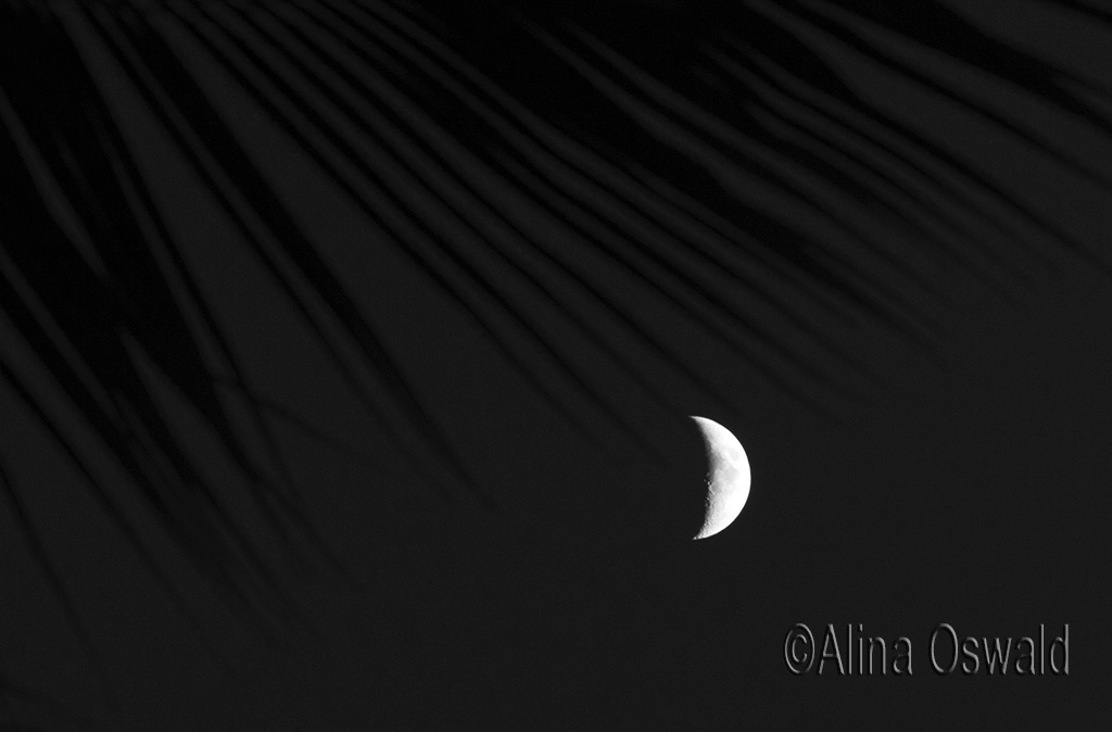 – the moon would be high up in the sky, hence, much smaller in size and far, far away from any buildings or trees (of course!); hence, no chance to take a close-up shot (no long lens) and no chance to take a wide-angle shot of the moon with the city light or nature