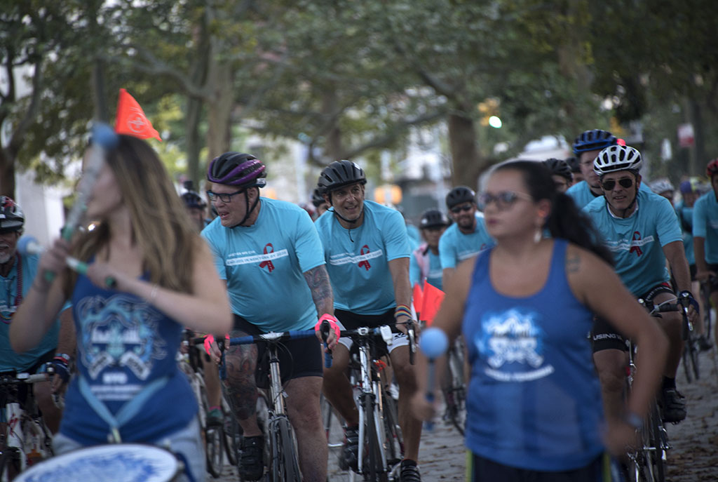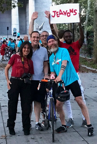 Working as a team, cheering for friends while attending and covering the Braking AIDS Ride 2018 closing ceremony in New York City