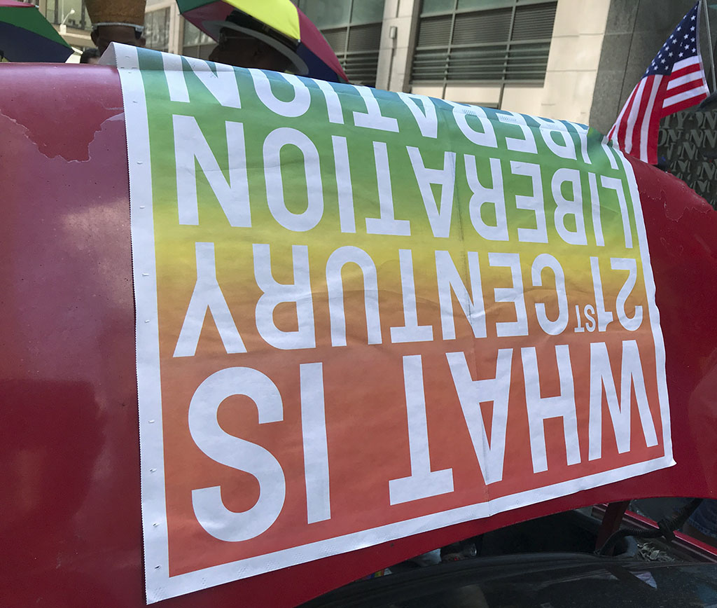 Marching in World (NYC) Pride 2019, distributing copies of What Is 21st Century Liberation broadsheet. Many thanks to Visual AIDS for photographing during the march and sharing the images.