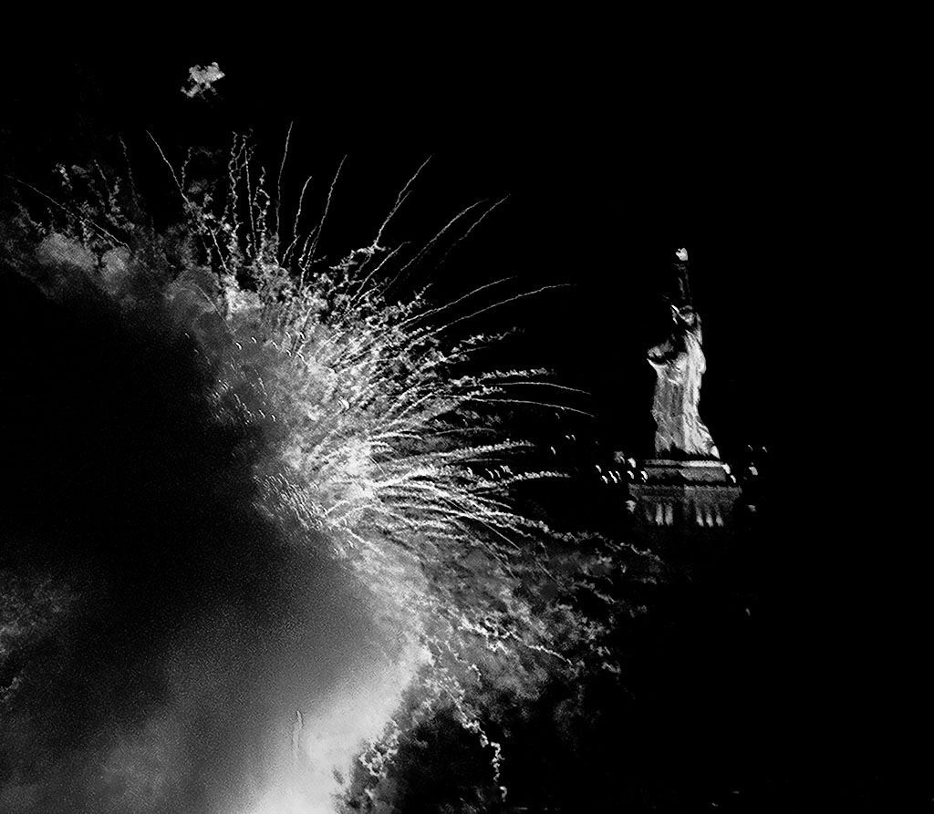 4th of July Fireworks & the Statue of Liberty. B&W © Alina Oswald.