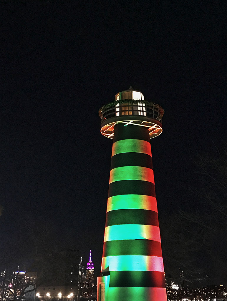 Christmas tree at night on the JC waterfront. ©Alina Oswald.