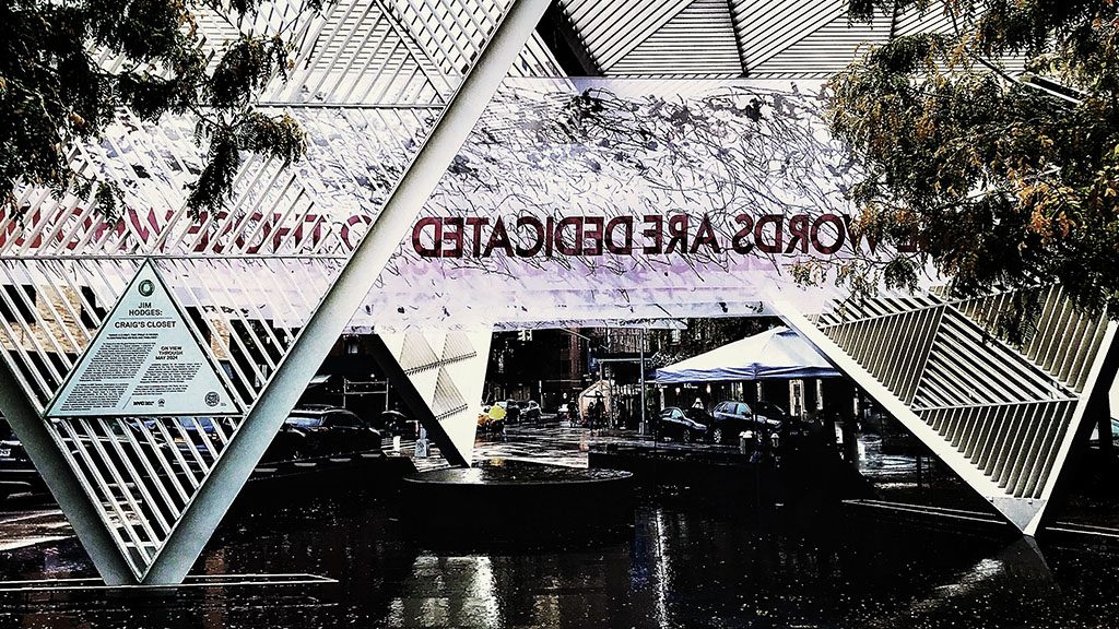New art installation by Avram Finkelstein displayed at the NYC AIDS Memorial